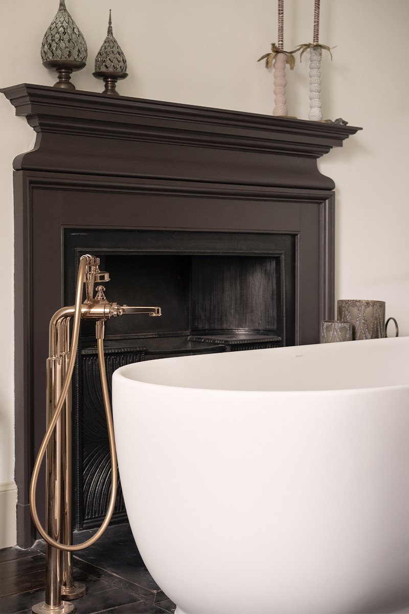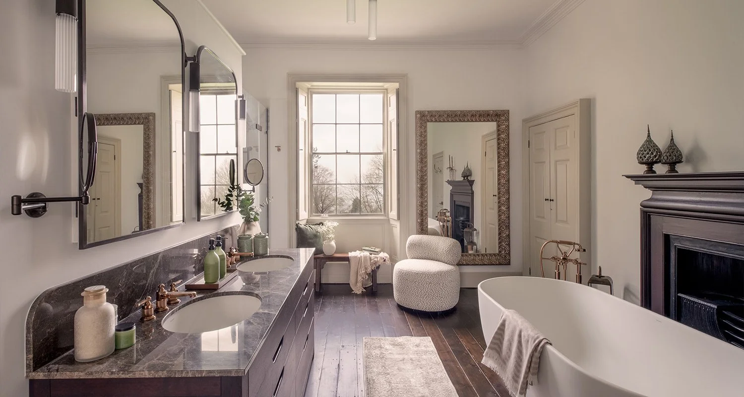 The brief focused on retaining key features, including double basins, a bath, and a generous shower, while transforming how the room functioned and felt. Key architectural elements such as the fireplace, timber flooring, and dual doorways needed to be preserved.